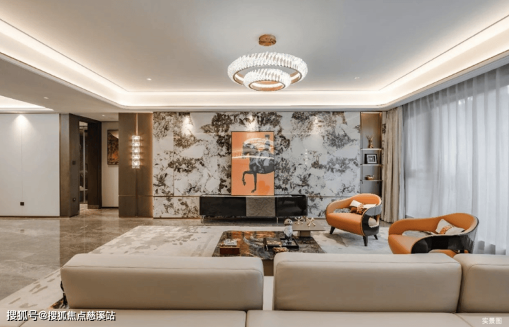 • 精装标准:"普拉达绿"奢石装扮的入户大堂,盛夏精灵岩板电视背景墙