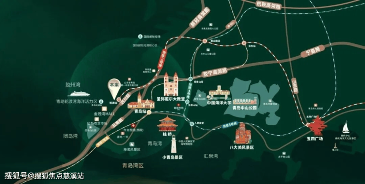 位置:位于市南区金茂湾北侧、轮渡湾地块,紧邻海边,距离约几十米,不过自住时要注意一下,离海边并不是越近越好