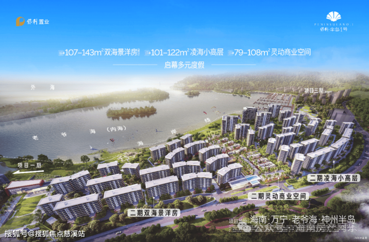 保利·半岛1号择址老爷海内湾海岸线之上,以"裸心、知己、海居"为项目定位,融入海岸带栖息地的自然生态,营造容纳万宁万物的滨海博物公园,打造飞茑千屿、去浪森林、海草乐园、流光泳池、游艇会所(建设中)、游鱼花街等景点,带来社交、独处、冥想、松弛等不同体验,共筑美学疗愈度假目的地。