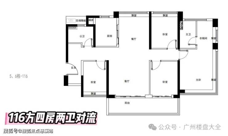 116㎡四房两厅两卫:与115㎡户型镜像,高层采光较好,但北侧部分房间可能受1栋遮挡,低层主阳台对学校。