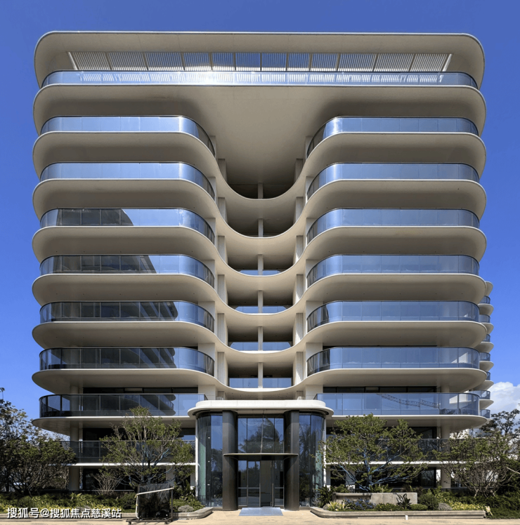 极简的建筑立面形式;精致的建筑表皮;海洋流体美学线条形成建筑外观群像独特的气质和标签。