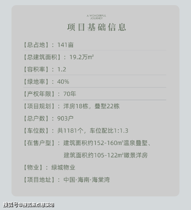 盛海棠总占地 141 亩,总建筑面积 19.2 万平方米 ,容积率仅 1.2,绿地率却高达 40%,产权 70 年。规划有 18 栋洋房和 22 栋叠墅,总共 903 户人家