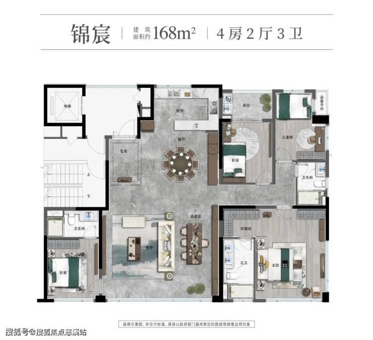 锦海棠建面约168㎡户型,新规高得房率
