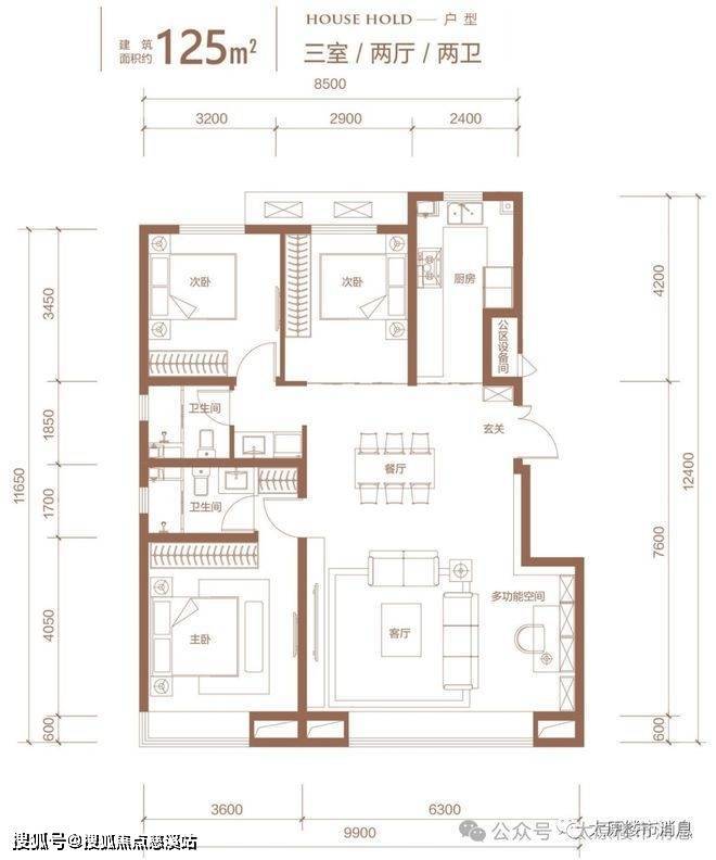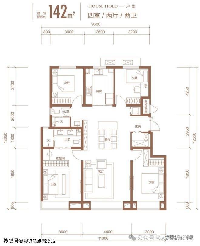 金地龙樾台一共有五个户型,分别是100平,105平的小三居,120平,125平的大三居,142平的四居。