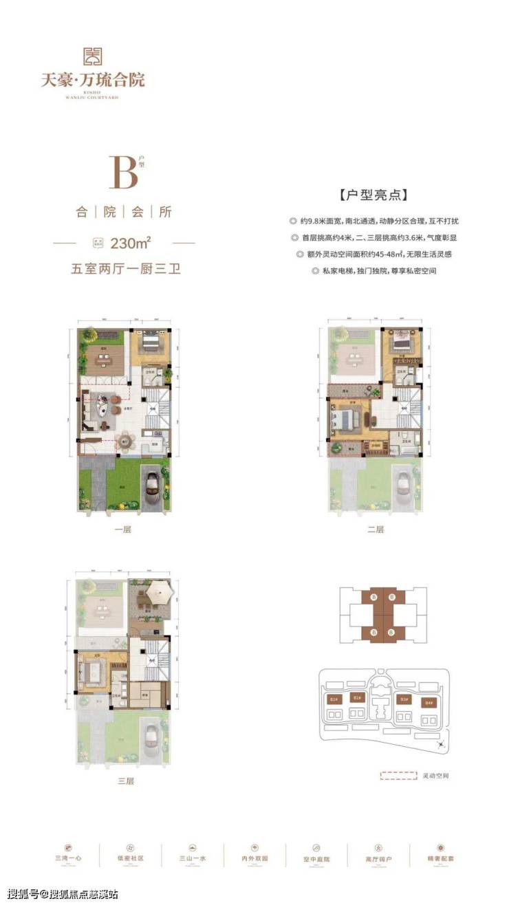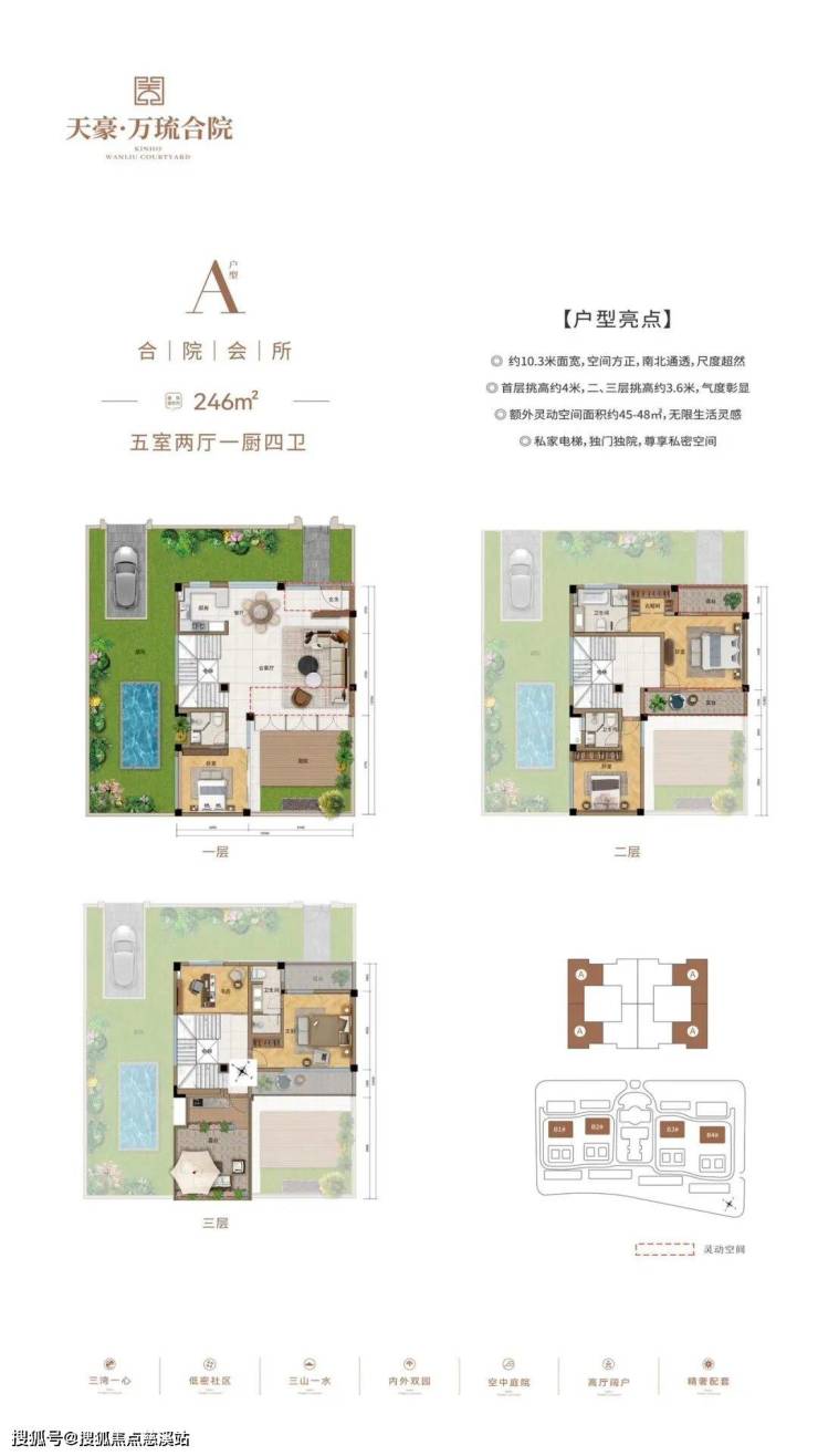 产品户型:建面约230-246㎡花园式合院,建面约276㎡空中平墅