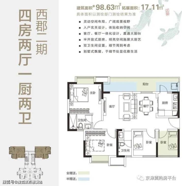 99㎡(4房2厅1厨2卫),赠送17㎡ ;