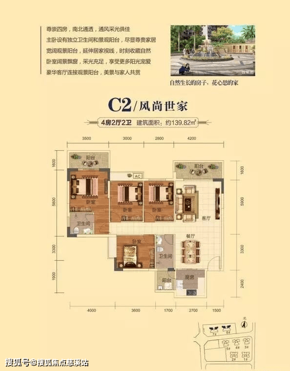 C2户型四房两厅两卫139.82 ㎡