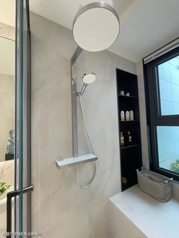 还配了牙刷杀菌器、顶部线型暖风机,甚至给你抠出了洗面巾的地方,淋浴间也预留了很大格子的壁龛,看完很难不说一句“还有谁?”