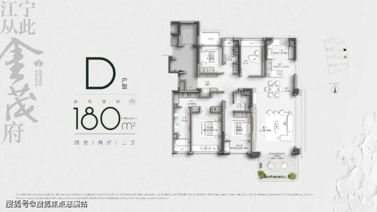 【建面约180㎡户型】四室两厅三卫,有3种: