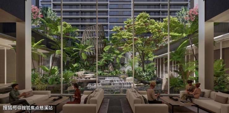 对标新加坡香格里拉 “花园翼”,打造谧境花园。大叶木棉、旅人蕉等热带植被丛生,台地花园、叠水水景、林下花园等多元景观,以五感为引,匠造 “海岛仙山,花园秘境”,让雨林意境融入生活。