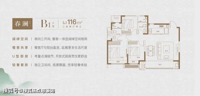 比如这款约116㎡户型,采用了罕见的南向超大面宽设计,大面宽+大宽厅非常具有视觉冲击力。