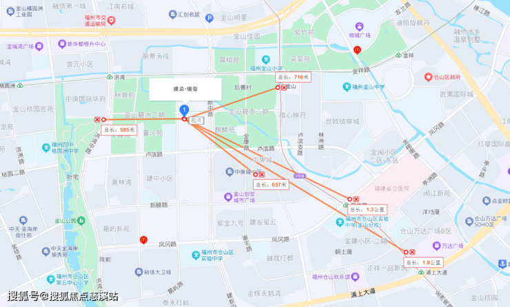 这片区域配套名字都带“金山”——金山地铁站(2&5号线换乘)、金山公园、金山省立医院、金山万科里、金山小学、金山中学... 真正的金山核心配套,都在它2公里范围内!比如直线距离: