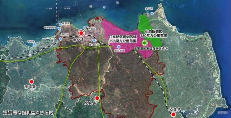 海口江东新区由中央直接部署,高规格、高标准打造,自贸港首批11个重点园区之一,约298平方公里史诗级规划面积,依托“一港双心四组团”空间格局,聚焦“4+X”产业规划,大力发展总部经济,土地规划蓝绿空间(水域、公园用地)占比达70%以上,拥有全长约31公里艺术地标海岸线,16个大师级地标性公共驿站,打造全球卓越生态环境。
