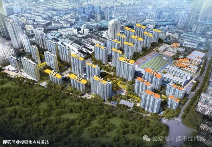 规划有21栋毛坯住宅,包含14栋18层小高层、1栋17层小高层、2栋16层小高层、2栋12层小高层、2栋10层洋房。1.2.4.6是回迁房 ,全部户型为104/113/127/140㎡