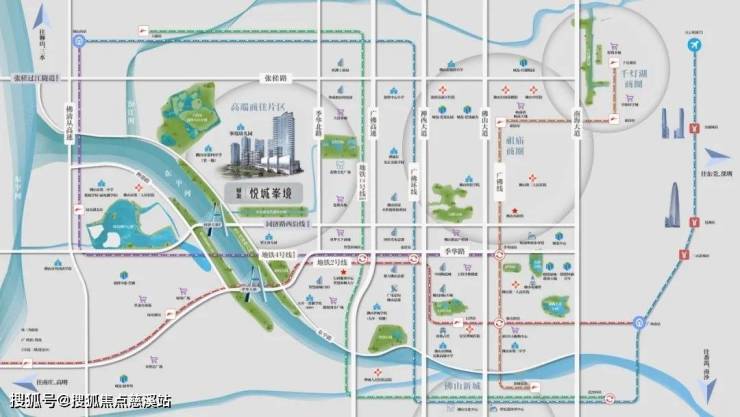 地铁2号线智慧新城站(1.3km)、4号线(在建)+广佛环线张槎站,快速接驳广佛核心区。