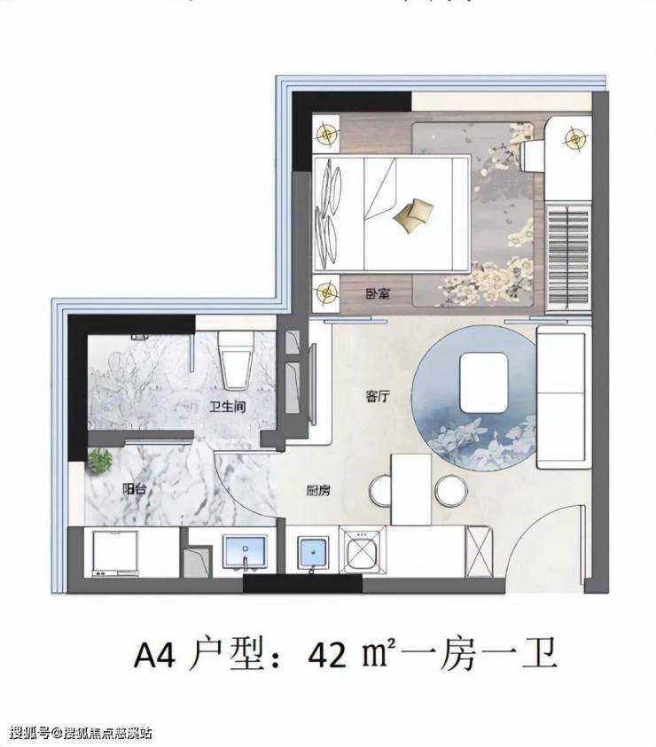 推出面积:42㎡、45㎡的一房及45㎡、54㎡、60㎡的两房。