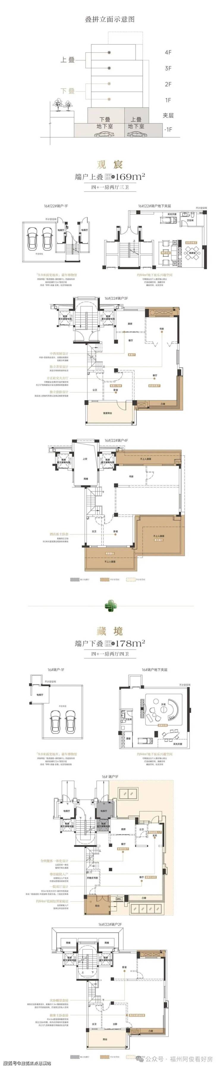 无中叠,独立产权车位 + 1 楼入户庭院;4 楼南北露台,拓展空间足,有天有地。