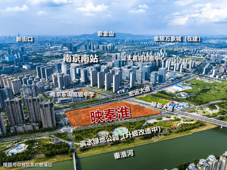 以滨水绿地公园为中心,恰好囊括了众多地标,南京南站、地铁3号线、1号线以及各类商业综合体。