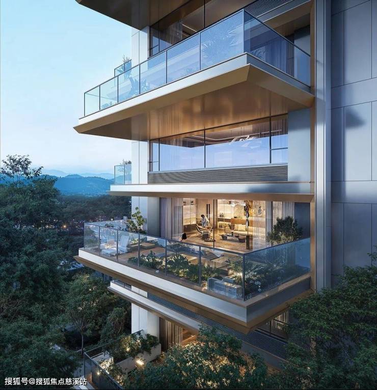在细节上,利用毛玻璃及精心考量露台间退位,提升户均私密性。
