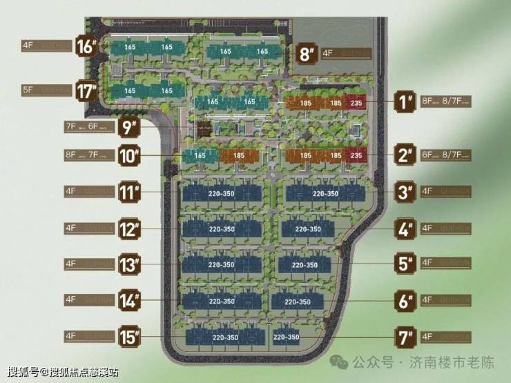 洋房:精装,都带浮岛露台(部分顶楼带露台,除17#其他一楼带院子(院子绿篱围合 草皮交付,院子60-120平)顶楼复式50平精装修套房带露台100平