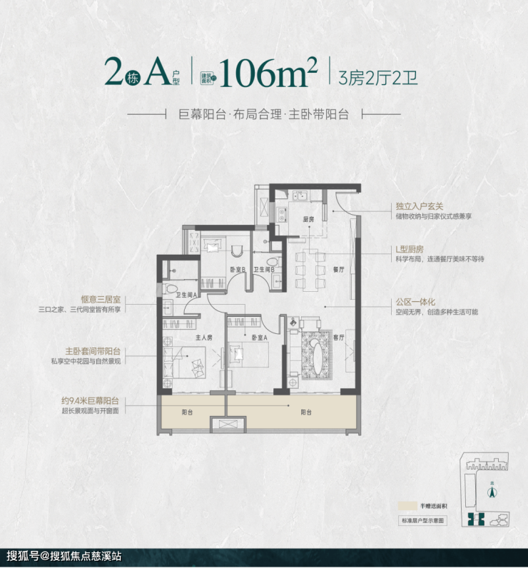 主卧套间带阳台/全明飘窗,私藏美景