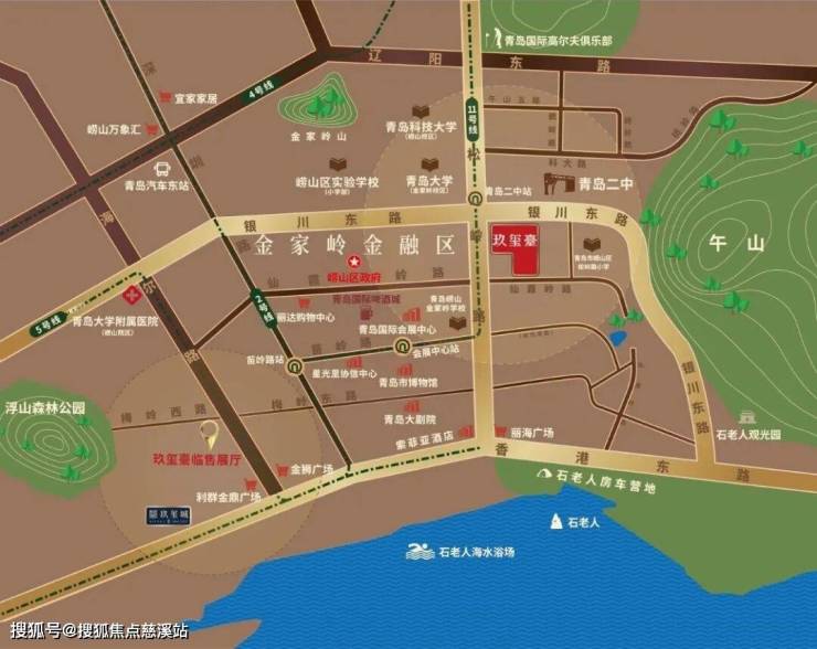 项目位于金家岭松岭路首,连接香港东路与辽阳东路,临近M11号线“青岛二中”站/M2号线“苗岭路”站/M5号线(建设中),距青银高速出入口约4KM,交通便捷。