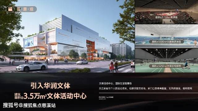 项目积极推动文化配置升级,打造3.5万㎡、总投资超4亿元的高端文体中心(拟引入专业文体公司进行高品质运营,涵盖了室内恒温游泳池,羽毛球场、足球场,篮球场等)。