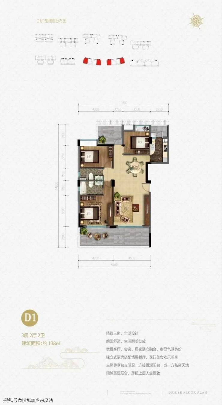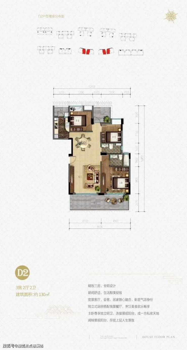 板楼,通透,两梯两户,温泉入户,平层3+ 1房户型设计,前后楼间距超大。