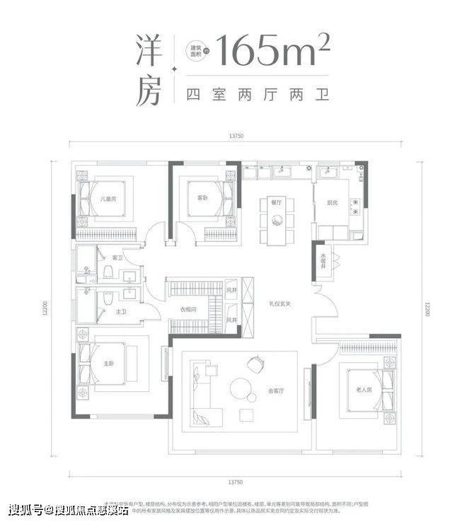 此户型金茂今典豪宅户型的延续和传承,充满强烈仪式感独立玄关,大尺度方厅设计,豪华主卧套以及超大储藏收纳主卧衣帽间,南北通透,成为市场豪宅主流。