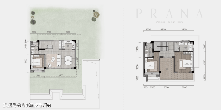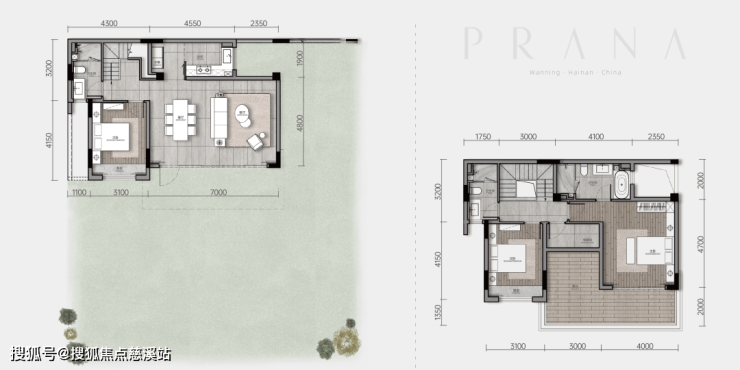 栖・谷 建面133㎡:约7米一体厅堂,L型转角露台,主卧套房配置衣帽间与独立卫浴。