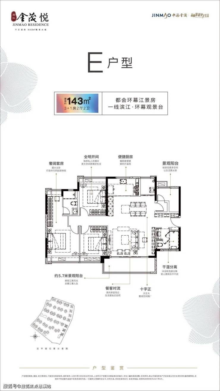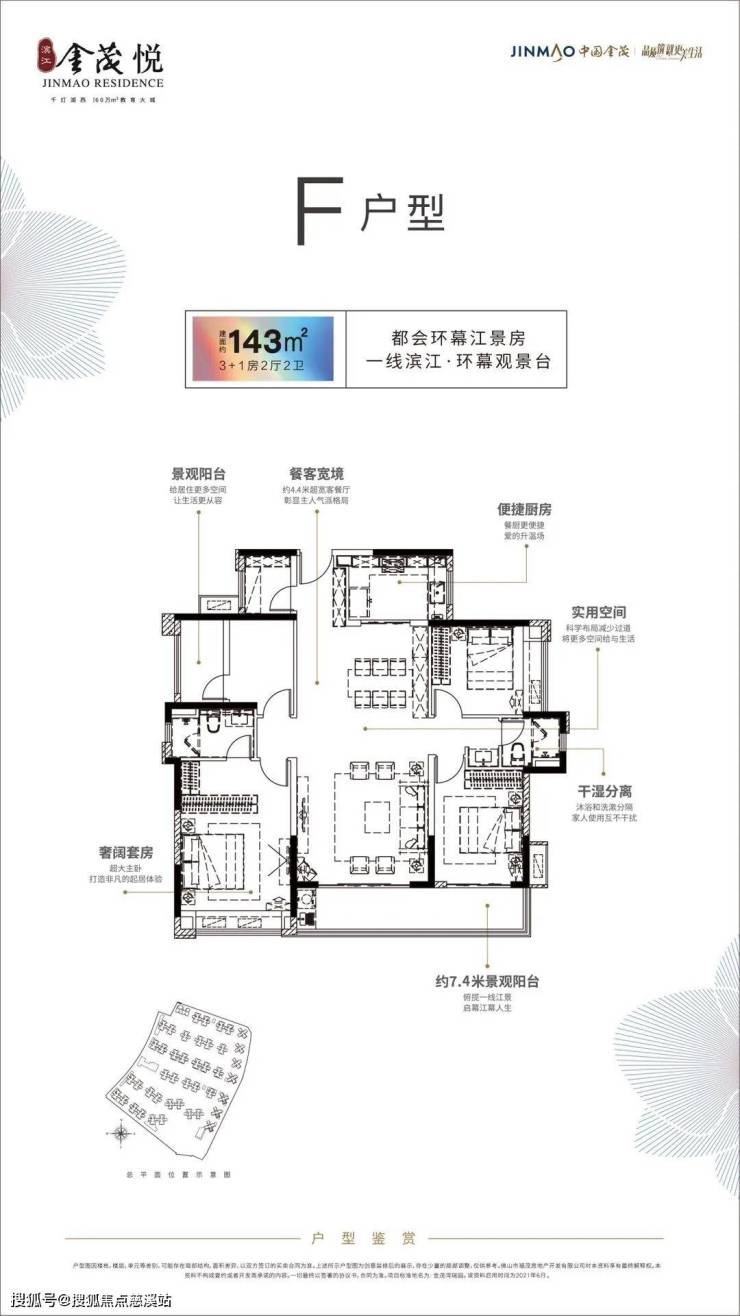 2、 匠心打造建面约87-142㎡三到四房,滨江社区样板。