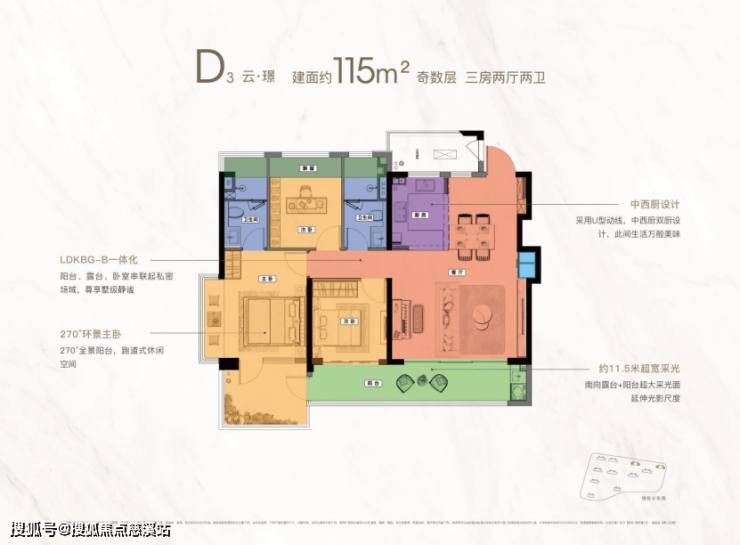 建面约115㎡奇数层约8.25米全景阳台,搭配约3.3米开间露台,“延长” 通透的观景边界面,以强化内外空间的连续性,让住户在新维度也能极致贴近、感受自然。