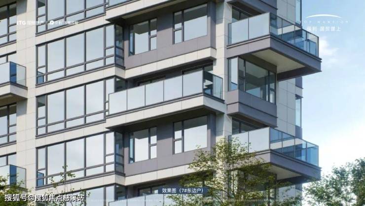 外立面上,南向采用超大面落地玻璃窗,搭配米白与灰色金属漆一体板勾勒挺拔轮廓,错层设计的双层挑高露台与主体有机融合,阳光投射灵动光影,审美非常在线。