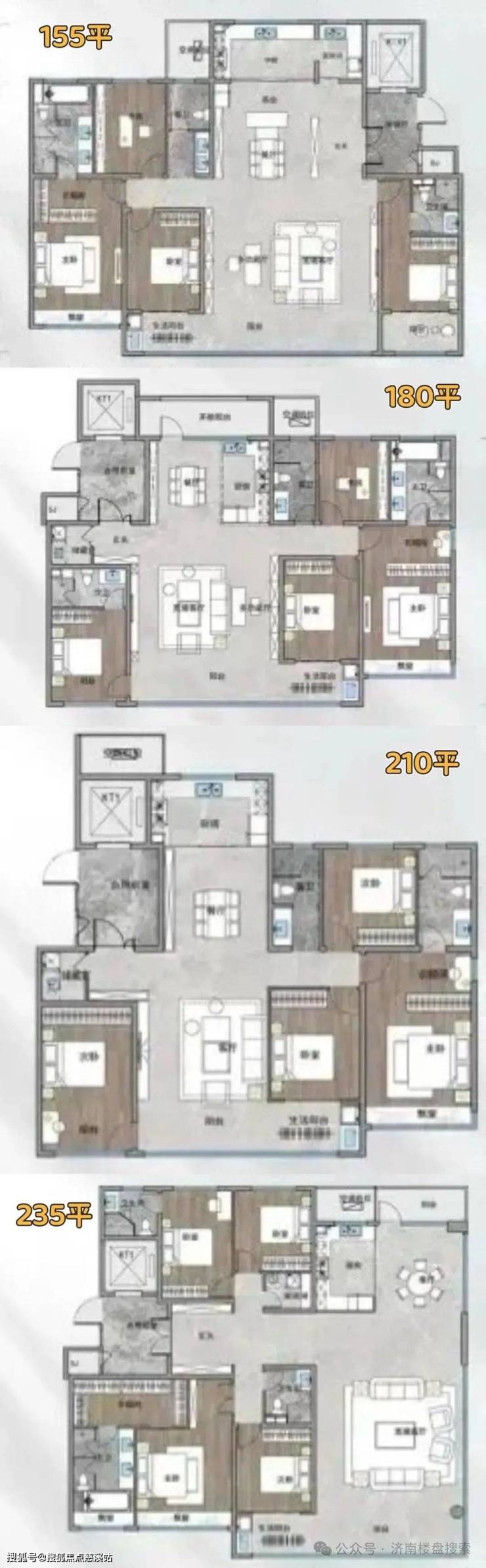 项目主力户型155-235平,还有部分300平大平层。(⚠️户型图非正式版本,为前期概念,仅作为参考,正式户型图还没有公布)