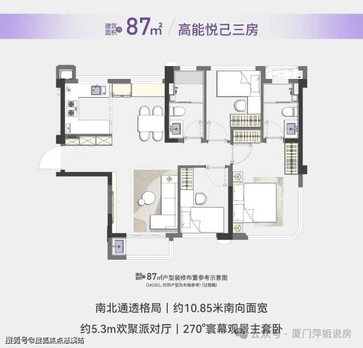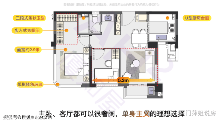 63㎡的户型,它其实是“单身主义”的理想之居,客厅可以做到5.3米面宽的大宽厅,主卧的尺度感也是这个面积前所未有的。这个户型套数很少,估计都不够卖。