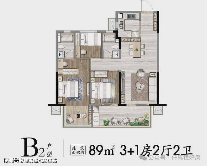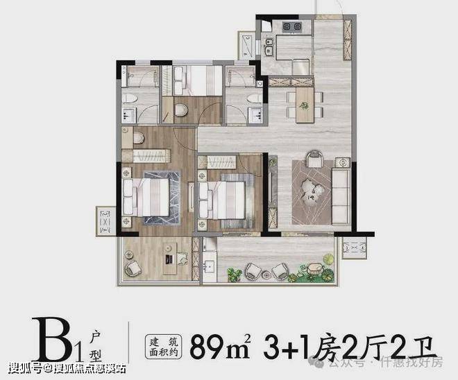 【户型面积】:建面约75-113㎡3+1房、4+1房;