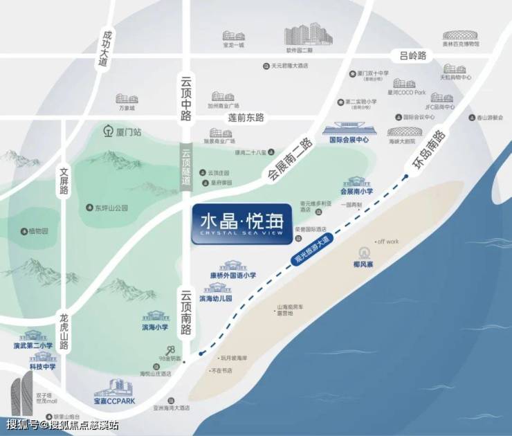 项目处于思明区文旅经济带核心区,滨海街道黄厝社区,厦门黄厝地处东海之滨,与众多知名景点相邻:有黄厝沙滩,椰风寨,国际会展中心等。项目背靠云顶山(豪宅云顶庄园也在附近),靠山面海。