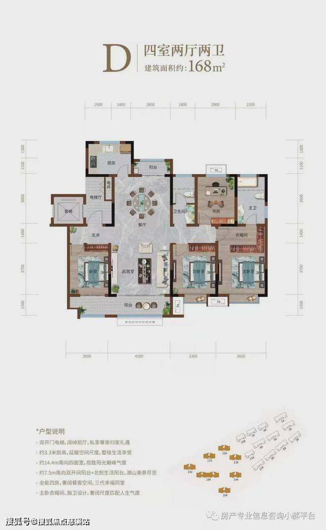 卖点:三层以上可看景,3.3米层高(等同别墅层高)