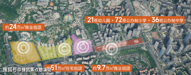 项目属于91万方的超级综合体,这里面包括24万㎡的商业、约51万㎡的住宅、约9.7万方的商业组团,以及72班小学+36班中学+21班幼儿园。