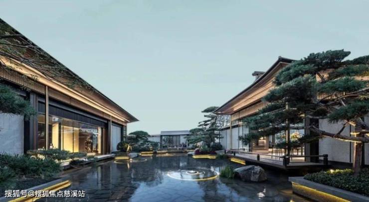 园林景观:约1万㎡中庭园林,以《桃源问津图》为蓝本,打造镜面水景、罗汉松阵列、鱼鳞纹景墙,营造“度假式低密”氛围。