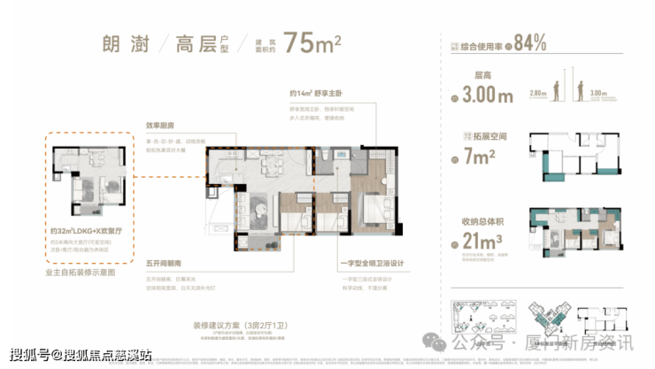 刚需64㎡首开7#楼仅30套(全盘仅60套),层高3米,得房率85%,使用面积相当于目前市场上75㎡的户型,客厅卧室全朝南,主卧14㎡带衣帽间,华为鸿蒙智慧+顶配精装,总价折后280-300万,绝对的岛内新房最低门槛!