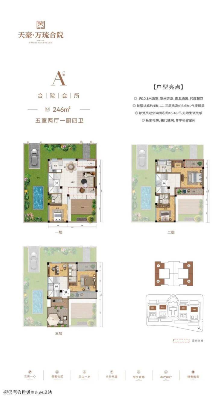 【A组团为空中平墅·B组团为合院会所】