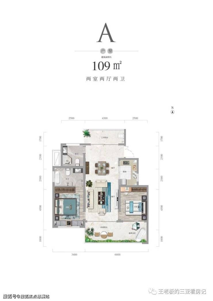 户型图:A户型109㎡两房两厅两卫