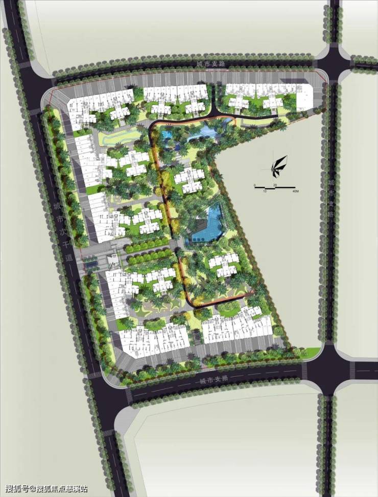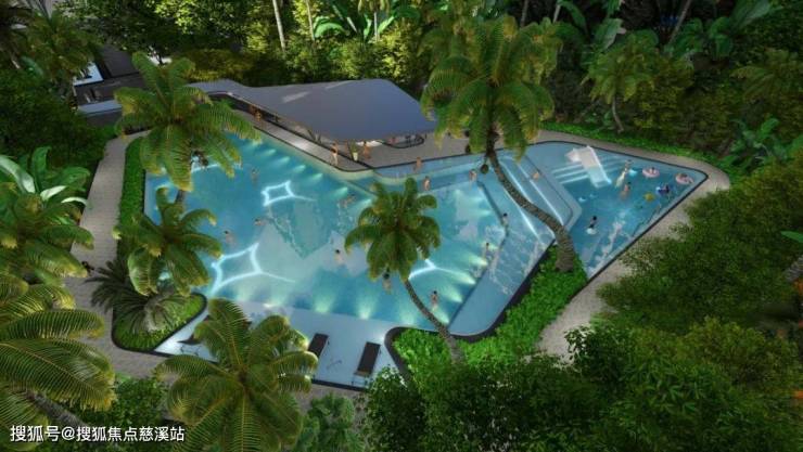 水上club:泳池以极具现代感的曲折线为整体,分为成人深水区、儿童潜水区、综合休闲服务区,满足多种景观需求。