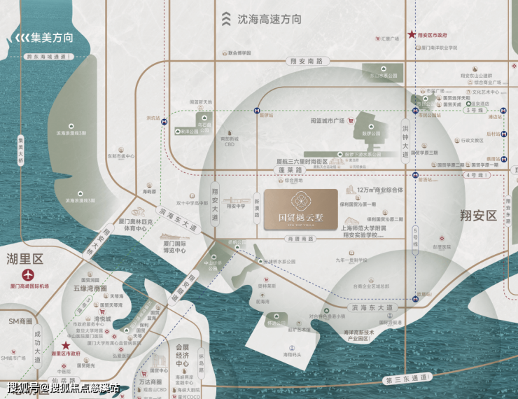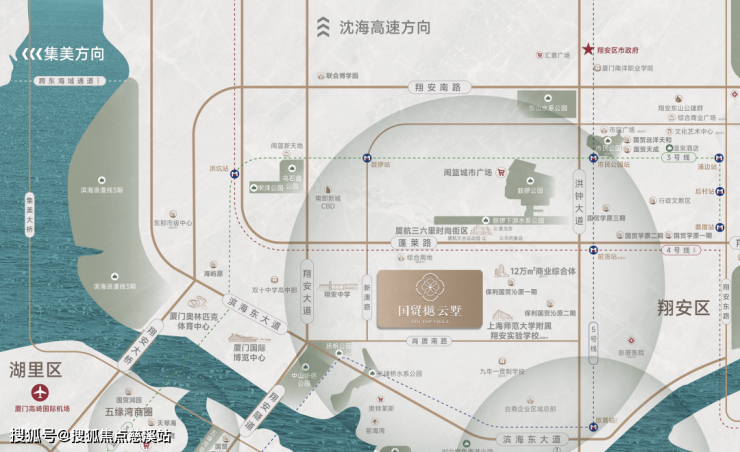 区位配套:项目位于保利·国贸沁原一期西侧,厦航三六里马路斜对面,坐拥翔安隧道、翔安大桥、第三东通道(在建)、翔安国际机场(在建)、4号线前浯地铁站(在建)等近岛城芯立体交通枢纽;鼓锣公园、怀远公园、杨帆公园、中山华侨公园、张埭桥公园(在建)等公园环伺;厦航三六里、闽篮城市广场、奥体莱斯、彭厝北商业地块(待出让)等商业汇聚;一路之隔就是上海师范大学附属翔安实验学校(在建)。