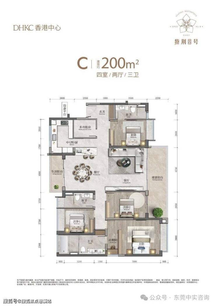 约200㎡四房两厅三卫(54套,占比22.2%):两套间设计、中西双厨,双阳台设计