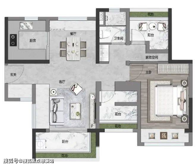 四开间超东南,通风采光极佳,保证室内充足的阳光与新鲜空气 。约 28 方奢阔大主套,可打造为多功能房间,满足不同生活需求 。作为花地湾性价比最高的南向三房,还拥有约 5.7 米南向开阔阳台,增加活动空间与观景视野 。适合追求舒适三房和较高性价比的改善型购房者 。