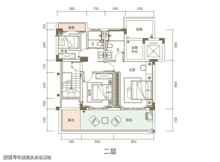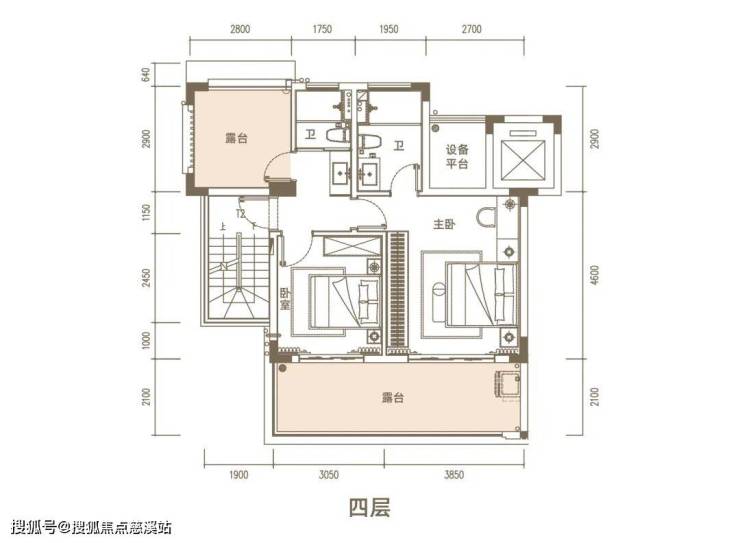 上叠面积134㎡(为3.4层)三房两厅三卫(可实现3➕1房)赠送顶楼露台