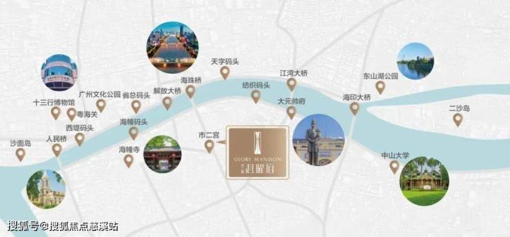 从项目自驾出发,行驶在江南大道北,穿过海珠桥/解放桥,就能抵达越秀区,经过海珠广场、北京路步行街、人民公园、中山纪念堂,直达广东省政府、广州市政府。