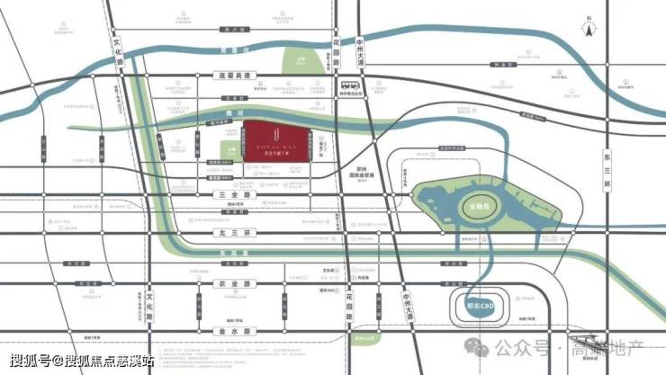 项目处于金水北区核心位置,东临柳林西路,西临高黄北路,北临魏河,坐拥一线河景风光。